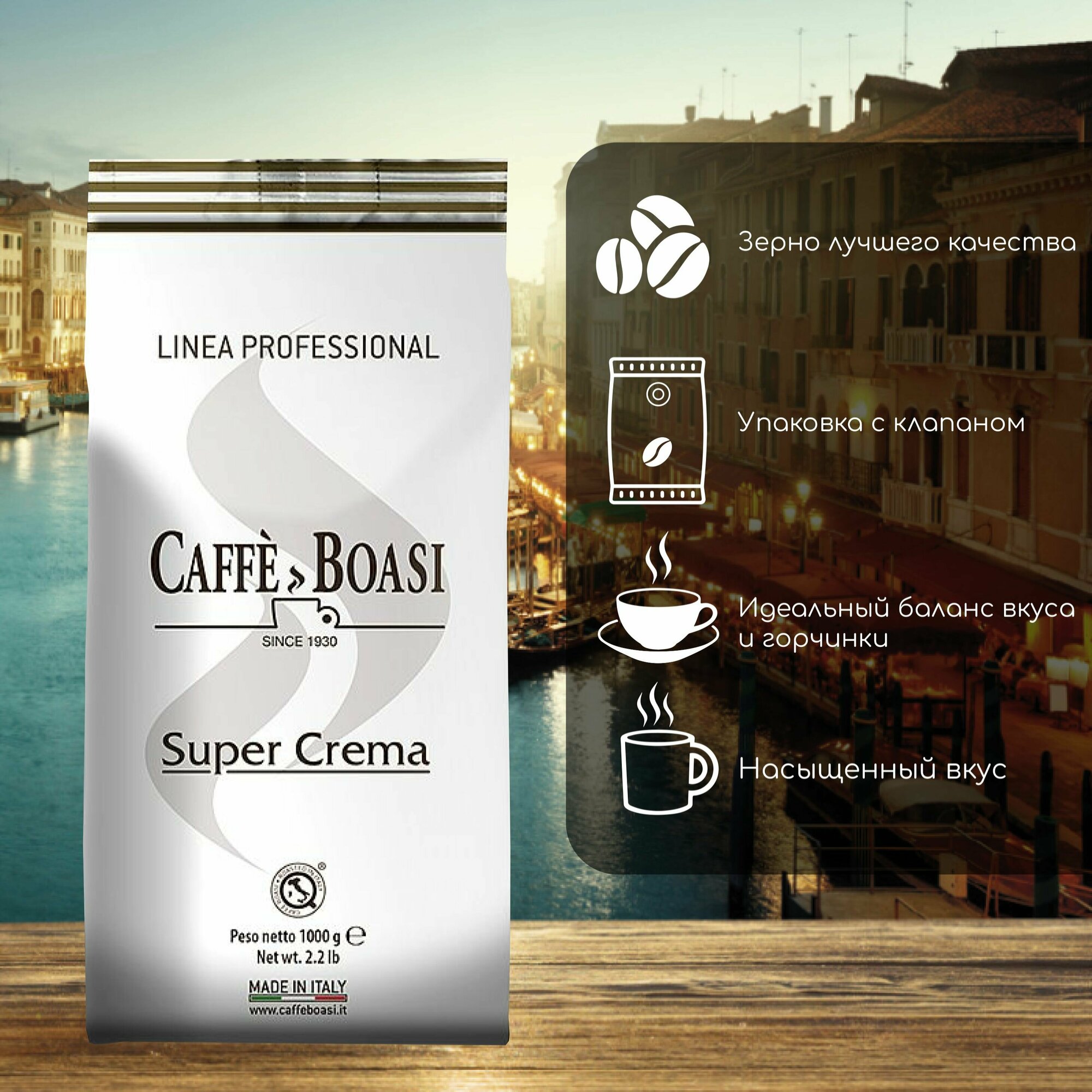 Кофе в зернах Boasi Super Crema Professional (Боаси Супер Крема Профешинал) 1 кг, вакуумная упаковка