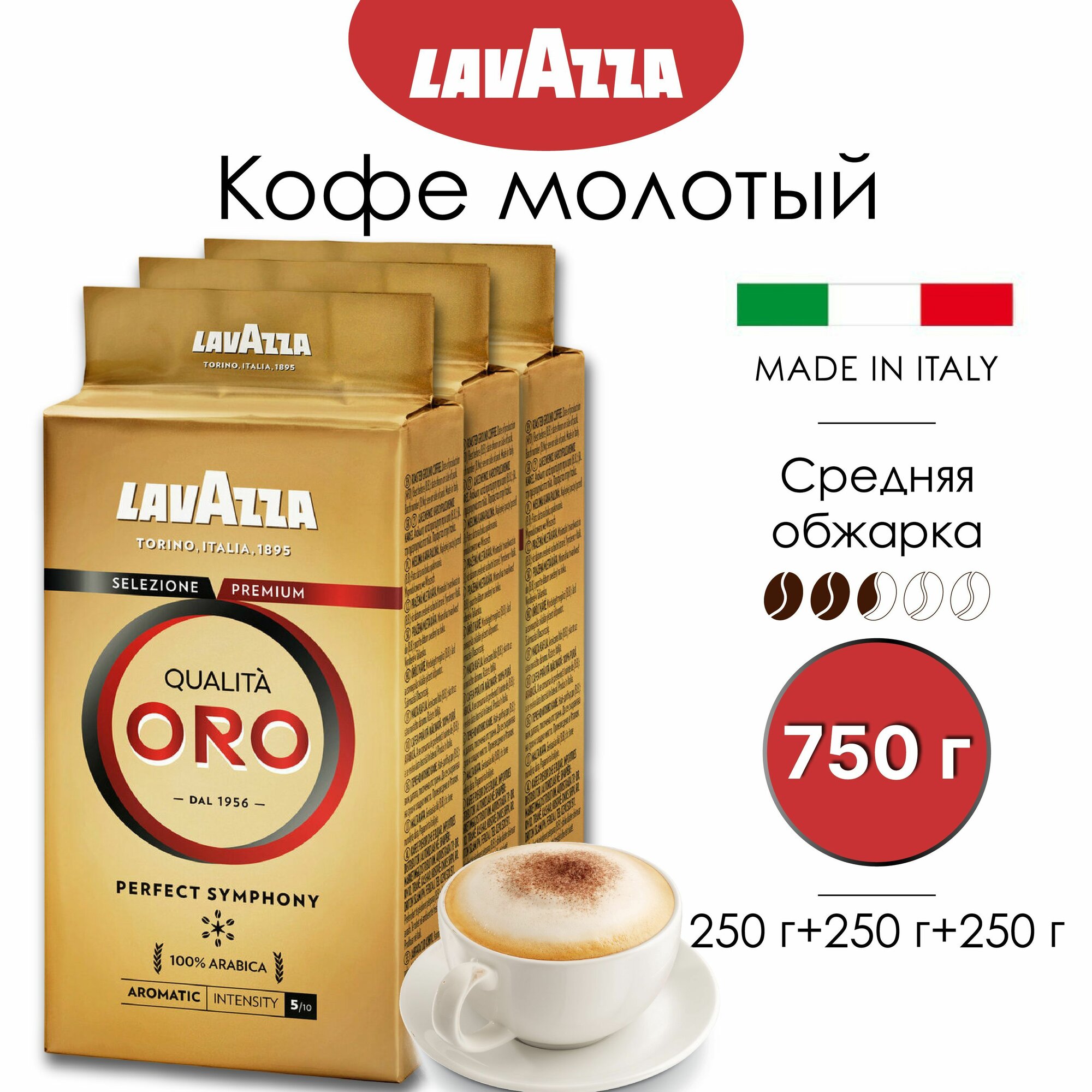Кофе молотый Lavazza Qualita Oro, 250гр х 3шт