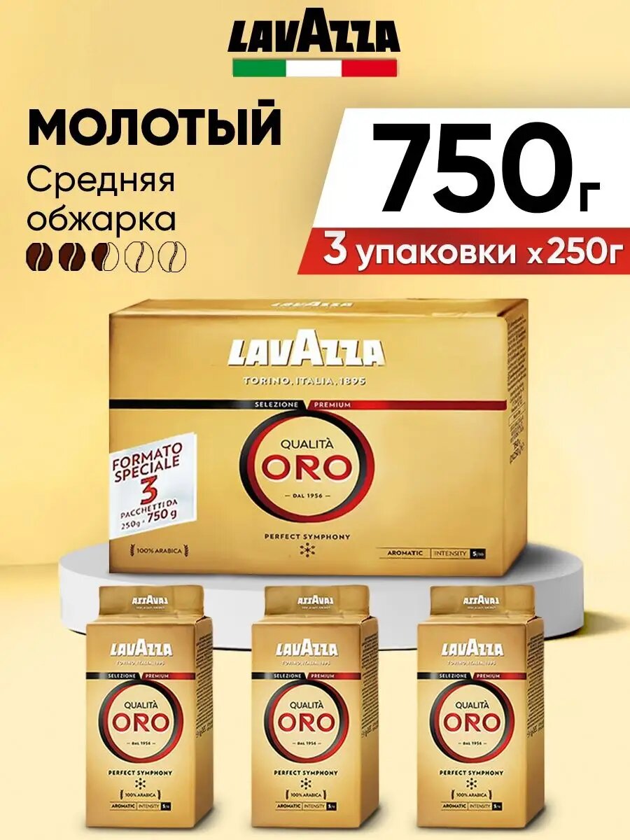 Кофе молотый Lavazza Qualita Oro, вакуумная упаковка, 250 г, 3 уп.