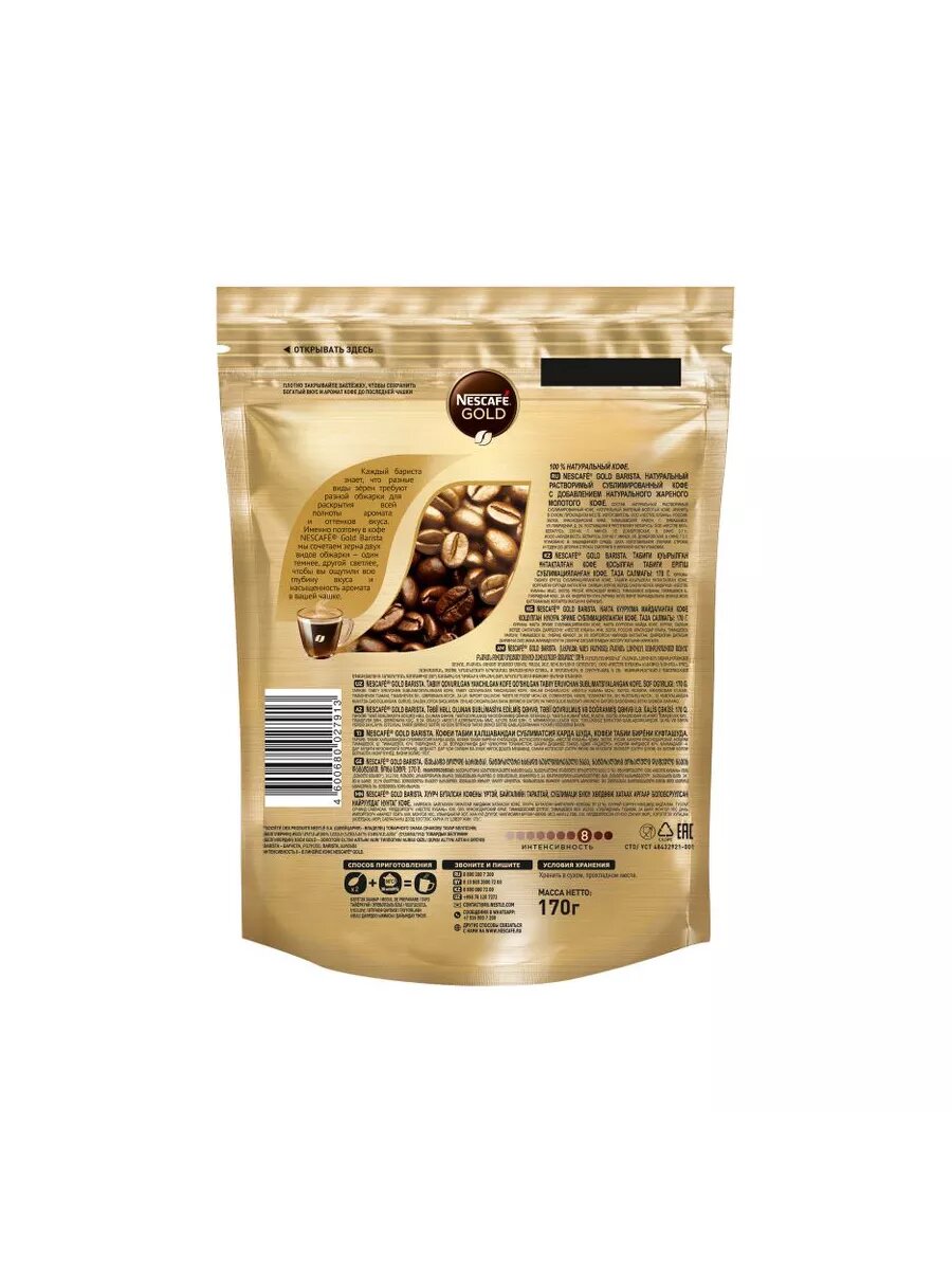 СохранитьКофе растворимый Nescafe Gold Barista, стеклянная банка, 170г интересное: