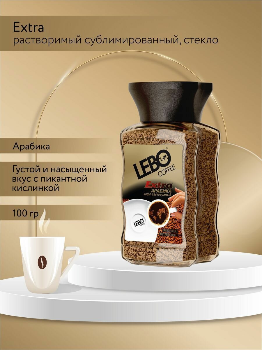 Кофе растворимый Lebo Extra, стеклянная банка, 100 г
