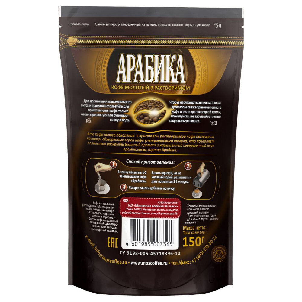 Кофе рacтворимый с молотым Московская Кофейня на Паяхъ арабика пакет 150 г