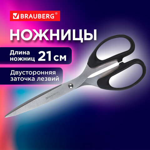 Ножницы BRAUBERG "Classic", 210 мм, чёрные, классической формы, 2-х сторонняя заточка, 230935, 230935