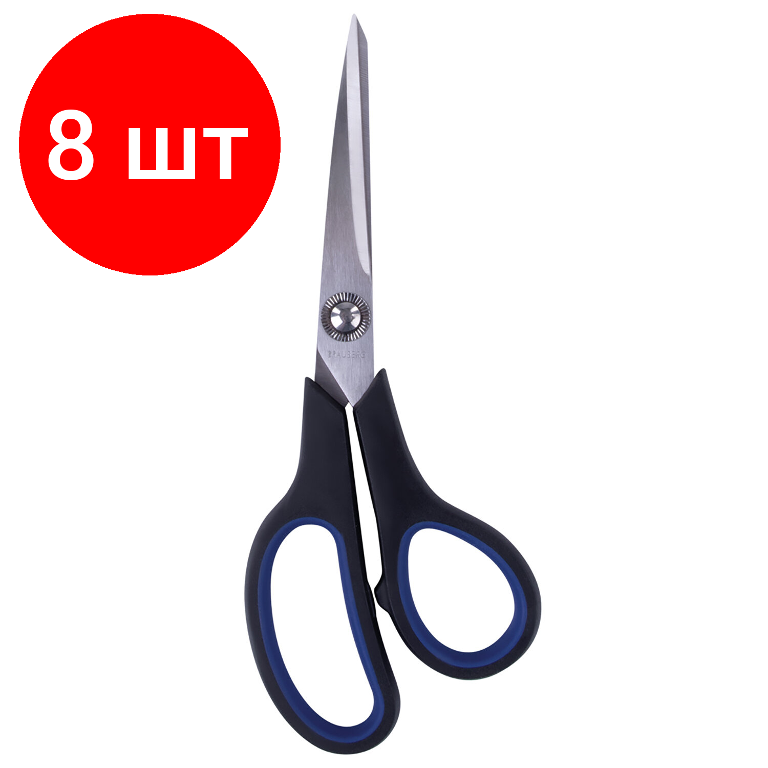 Купить Комплект 8 шт, Ножницы BRAUBERG "Soft Grip", 190 мм, черно-синие, резиновые вставки, 3-х сторонняя заточка, 230762