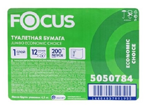 FOCUS бумага туалетная Jumbo EKO 200 м. 1 слой, белый. 12 шт. в упаковке