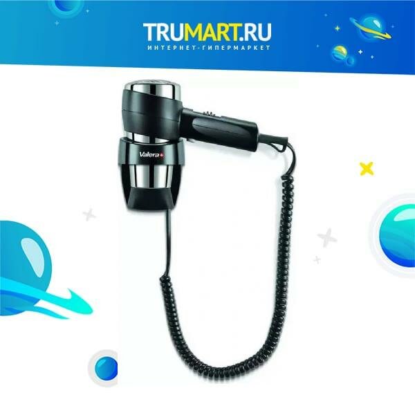 Фен настенный Valera Hospitality Action Super Plus 1600 (542.06/038A black), мощность 1600 Вт, тройная система безопасности, термостат выключения, профессиональный спиральный кабель, холодный воздух, концентратор