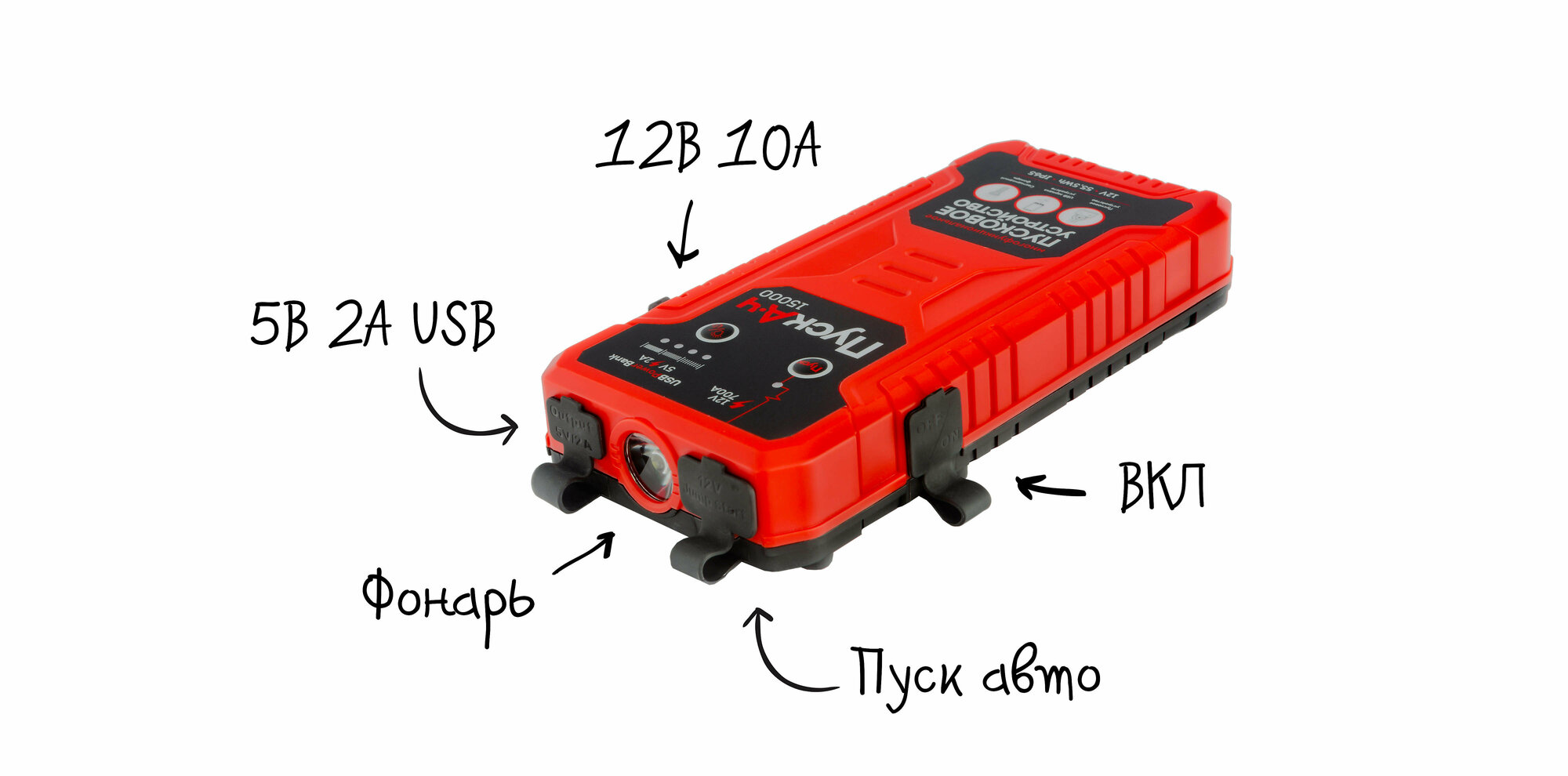 Пуско-зарядное устройство ПускАч 15000, многофункциональное, BS-JS15, красный