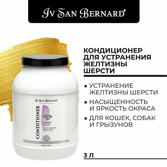 Шампунь Iv San Bernard Traditional Line Cristal Clean для устранения желтизны шерсти кошек и собак , 3 л