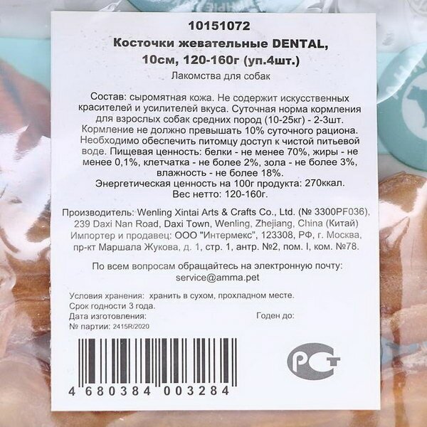 Косточки жевательные DENTAL, 10см, 120-160г (уп.4шт.)