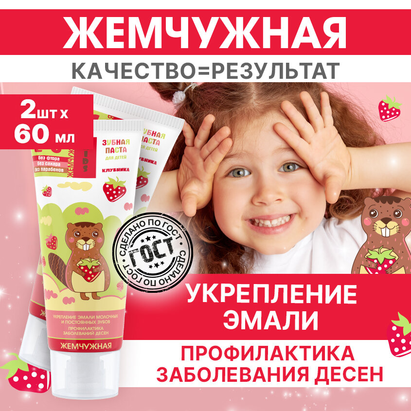 Жемчужная Зубная паста Жемчужная Kids "Клубника" с 2-х лет, 60 мл
