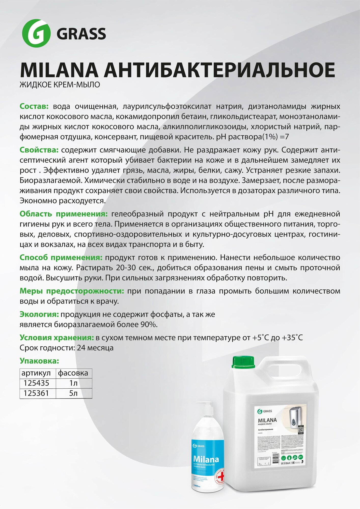 125361_жидкое Мыло 'Milana Антибактериальное'! 5кг GraSS арт. 125361