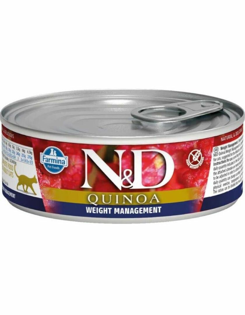 Корм консервированный Farmina N&D Quinoa Weight management для кошек, контроль веса, 80 г, 1 шт.