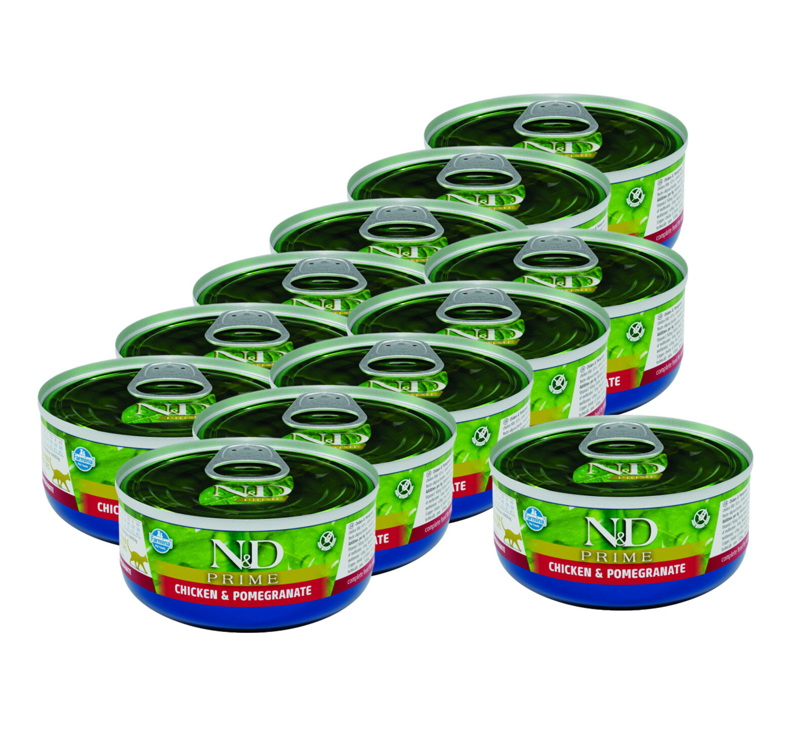 Влажный корм с курицей и гранатом, для кошек, Farmina N&D Prime, Chicken & Pomegranate, упаковка 12 шт х 80 г