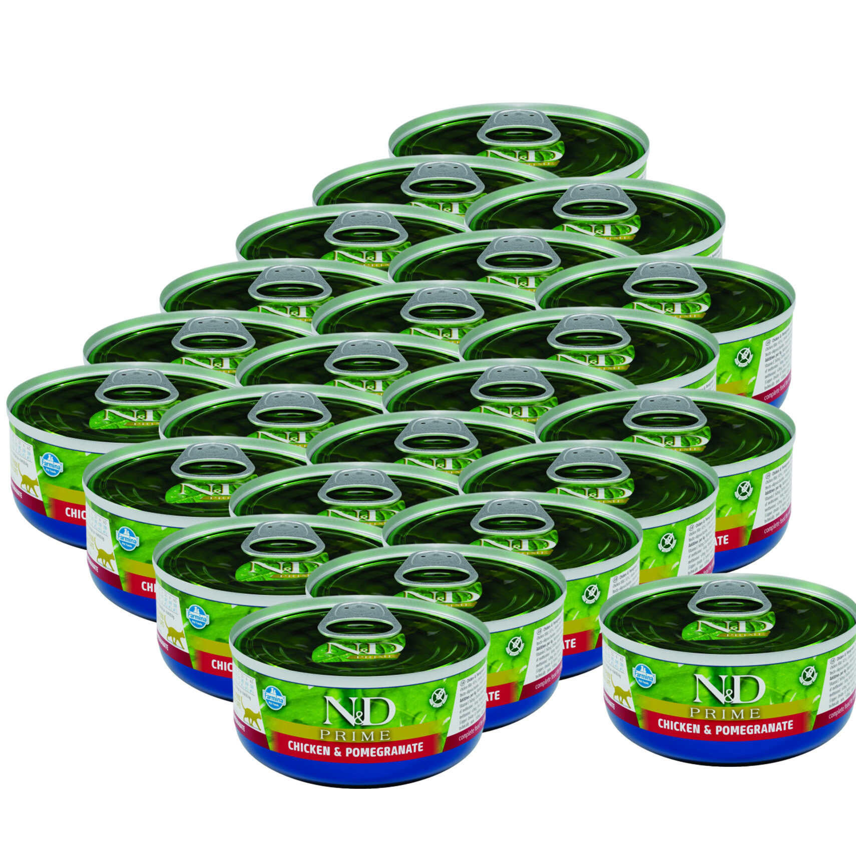 Влажный корм с курицей и гранатом, для кошек, Farmina N&D Prime, Chicken & Pomegranate, упаковка 12 шт х 80 г