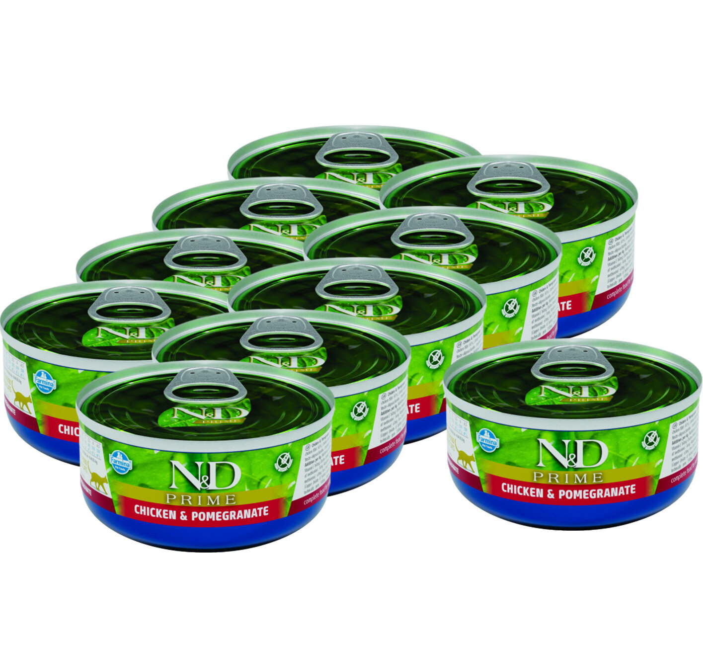 Влажный корм с курицей и гранатом, для кошек, Farmina N&D Prime, Chicken & Pomegranate, упаковка 12 шт х 80 г