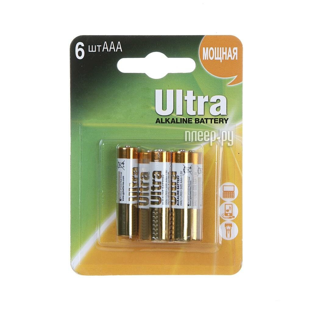 Батарейки GP Ultra AAА, PCA24AU019, алкалиновые, 6 шт (24AU4/2-2CR6 Ultra)