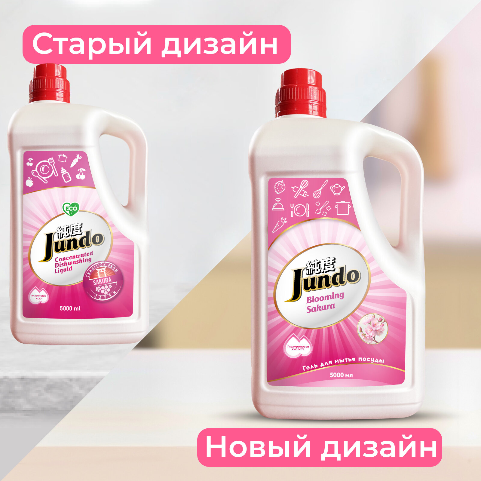 Jundo Конц-ный ЭКО гель с гиалуроновой кислотой для мытья посуды. и дет.принадлежностей «Sakura» дойпак ,800мл