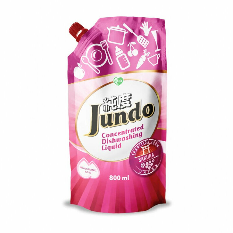 Jundo Концентрированное экологочное средство для мытья посуды и детских принадлежностей с гиалуроновой кислотой Сакура 800 мл в мягкой упаковке