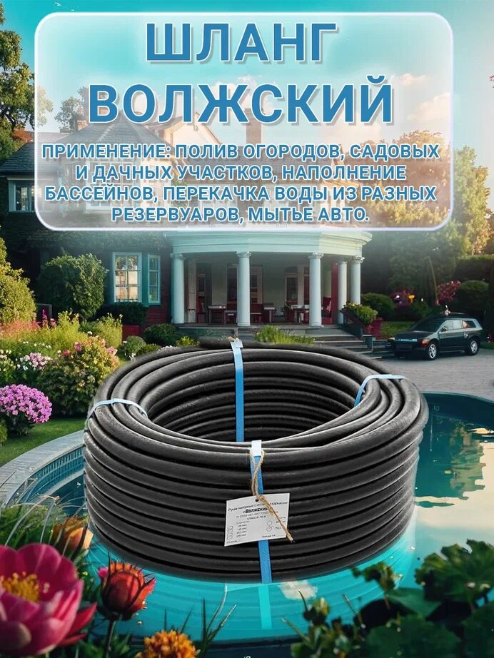 Шланг резиновый, d = 25 мм, L = 50 м, поливочный, волжский 10041193 .