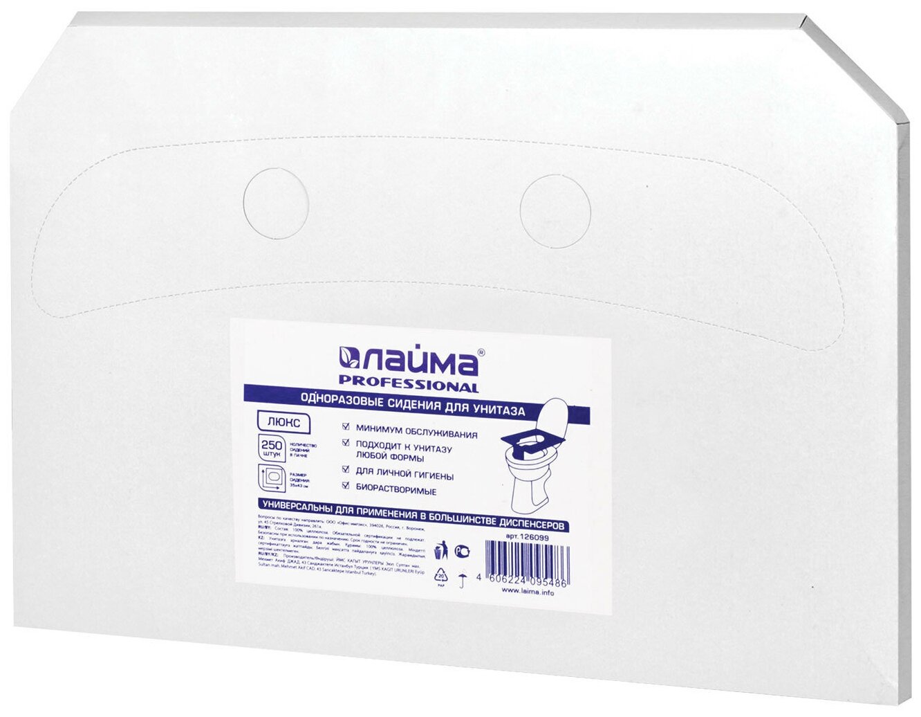 Покрытия на унитаз Лайма (система v1), 1/2 сложения, 250 штук, 35х43 см, люкс (126099)