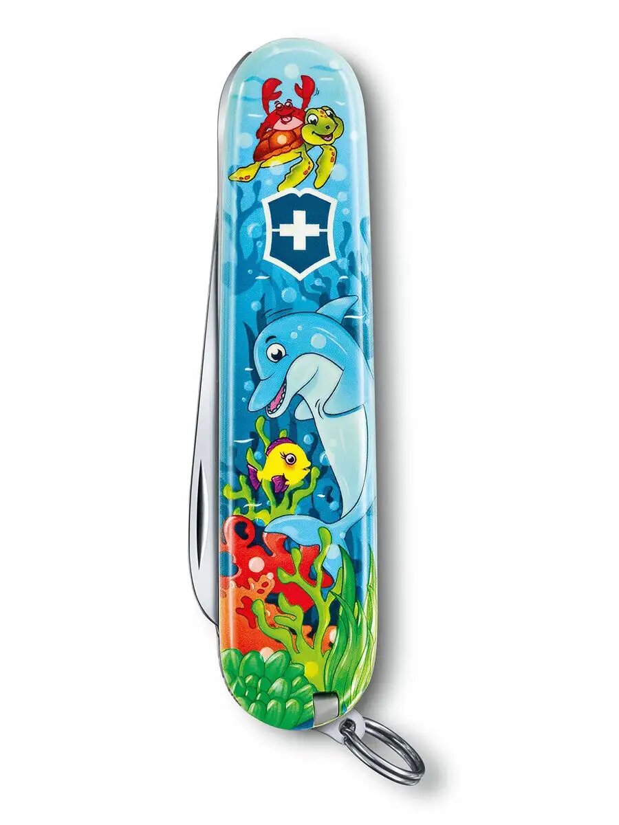 Складной нож Victorinox My First Victorinox Dolphin Edition, функций: 9, 84мм, голубой / рисунок, коробка картонная [0.2373.e1]