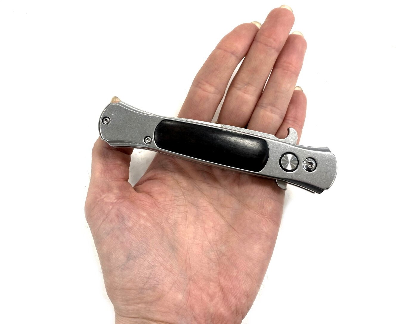 | Отзыв: | Нож как будто прямиком из фильма про ганстеров или мафиози, давно хотелось что-то подобное, смотрел кучу обзоров и всегда поражала скорость работы автомата. До этого были классические складни, но этот..просто произведение. Уже несколько месяцев пользуюсь, клацаю постоянно и всё в порядке |