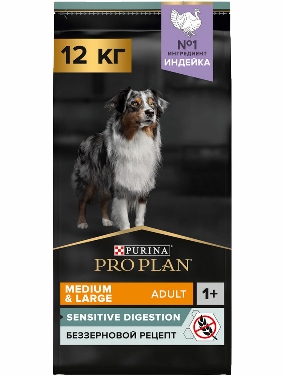 Pro Plan корм для собак средних и крупных пород, беззерновой, чувствительное пищеварение, индейка 12 кг