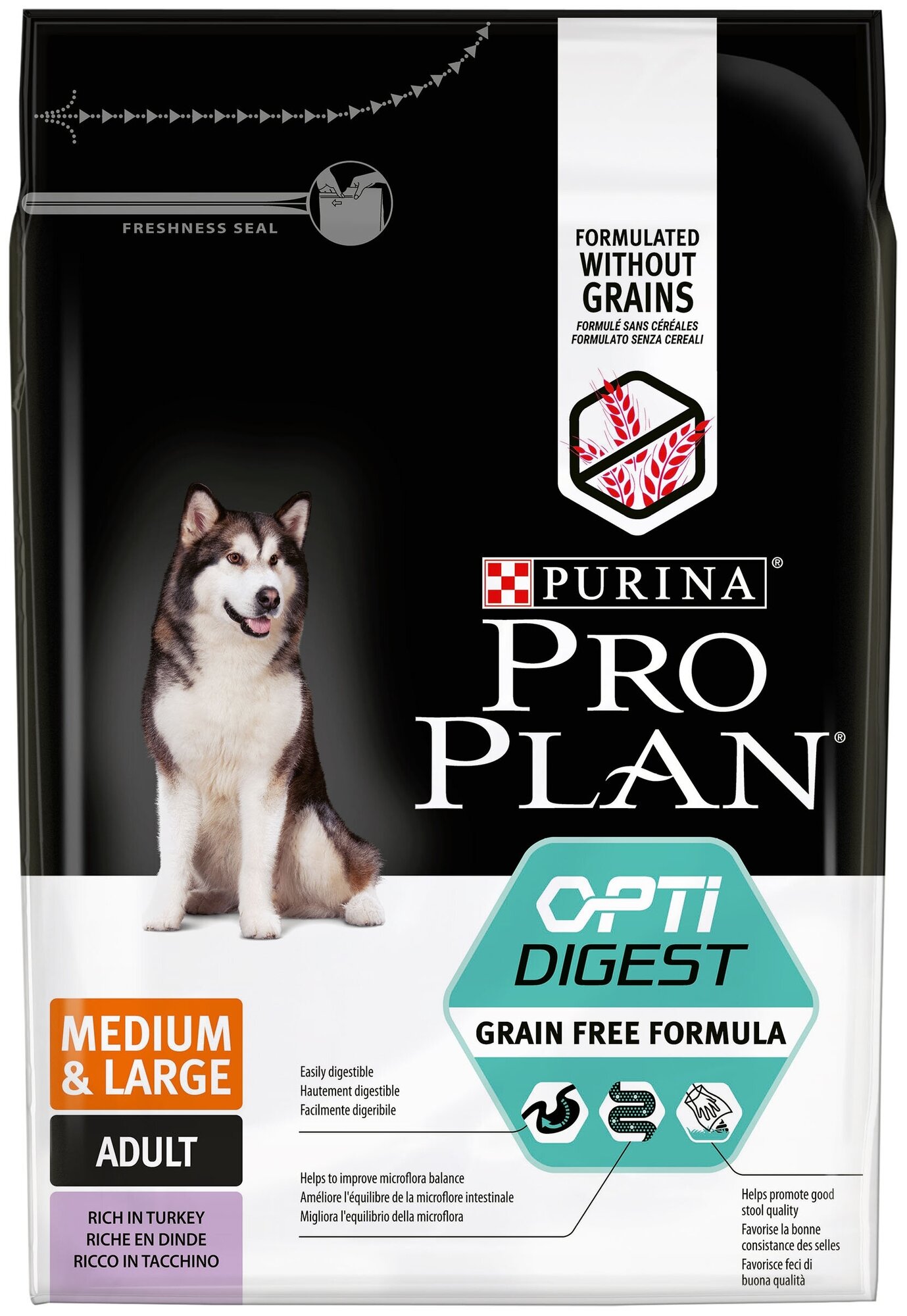 Pro Plan Grain Free Medium&Large корм для взрослых собак средних пород с чувствительным пищеварением Индейка, 2,5 кг.