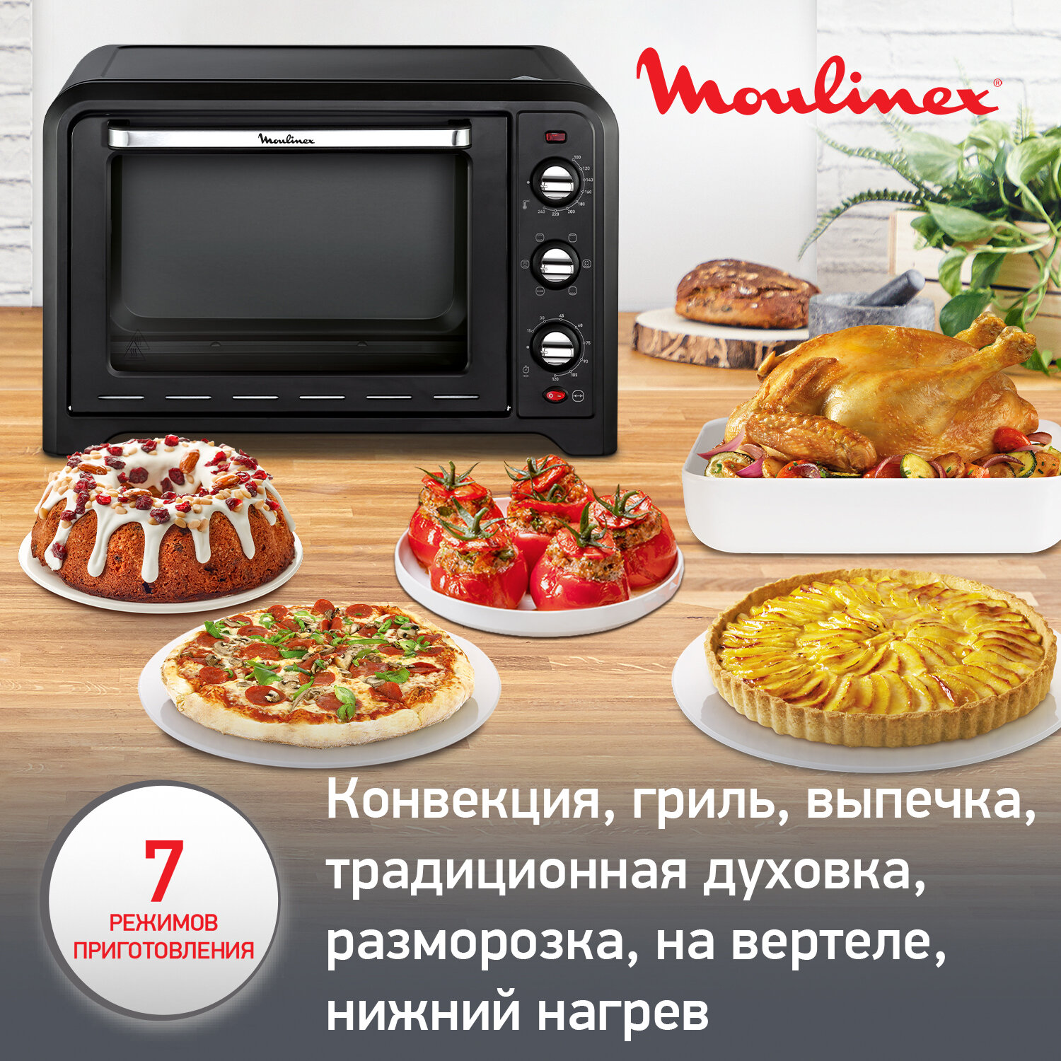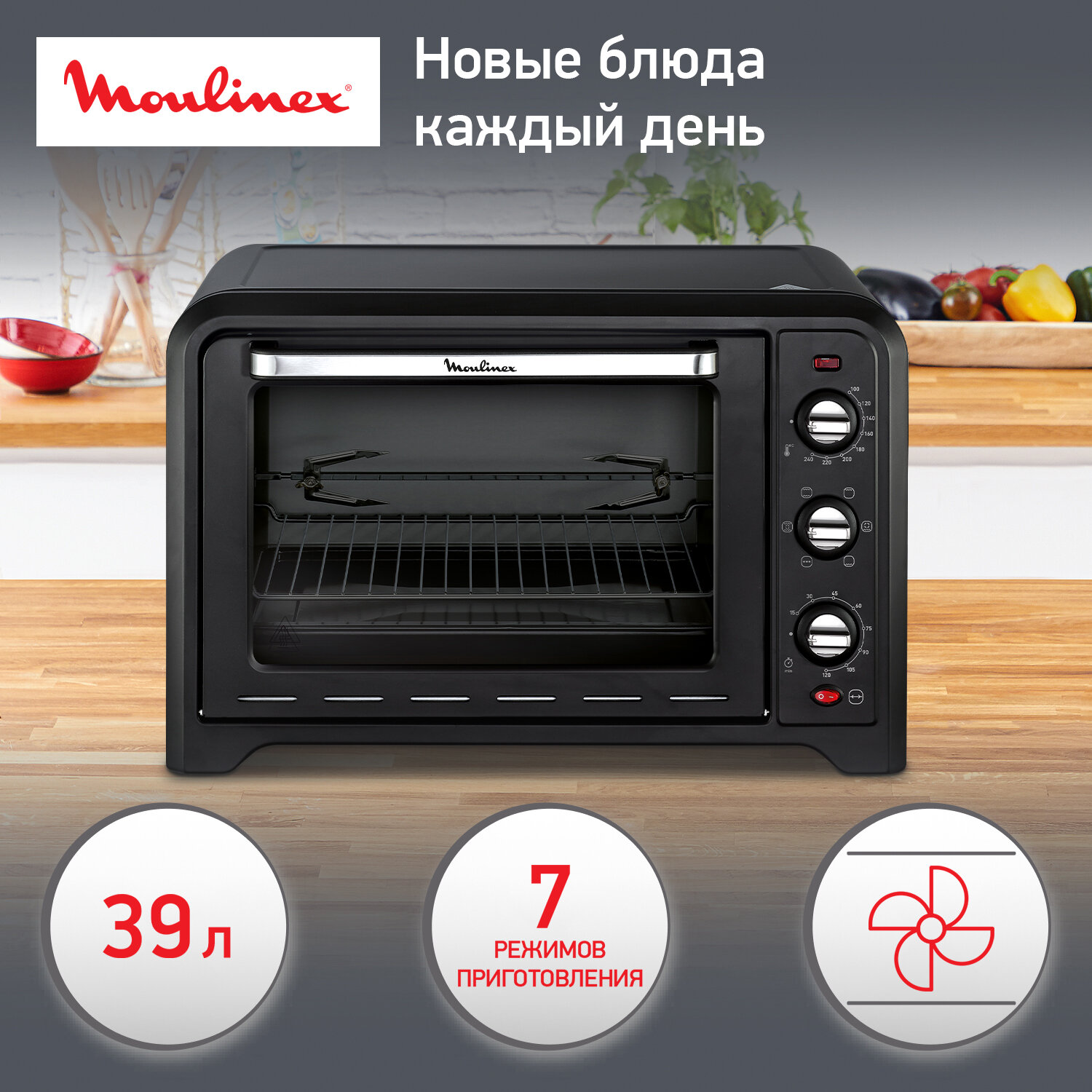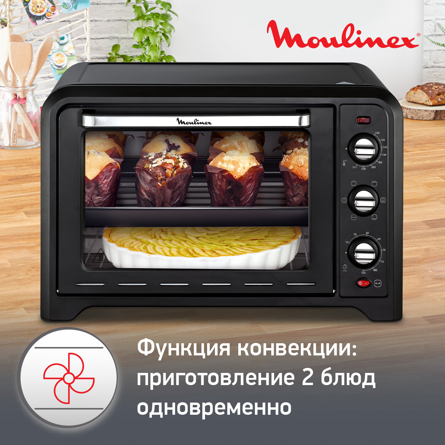 Мини-печь Moulinex Optimo OX485832, 39 л, 2000 Вт интересное: