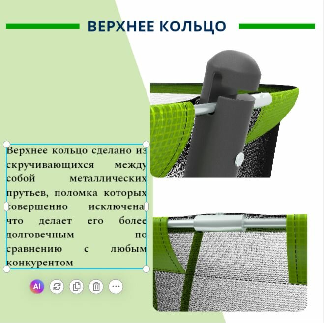 | Отзыв: | Дети сразу начали использовать не по назначению, они бегают в догонялки по внешнему краю батута (по кожуху пружин).
