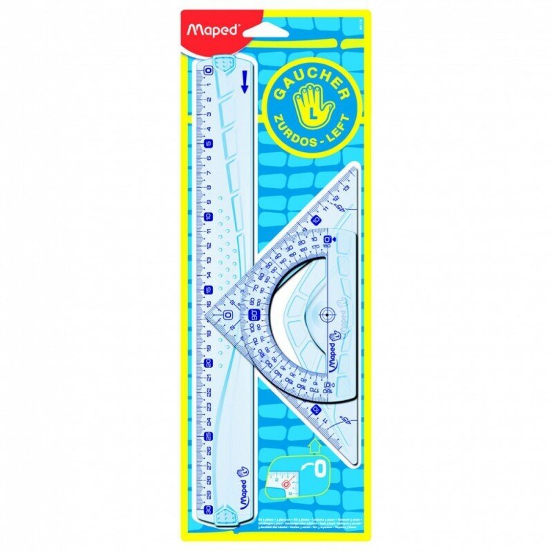 Набор чертежный MAPED GEOMETRIC для левшей: линейка 30см, угольники 21см, транспортир 12см