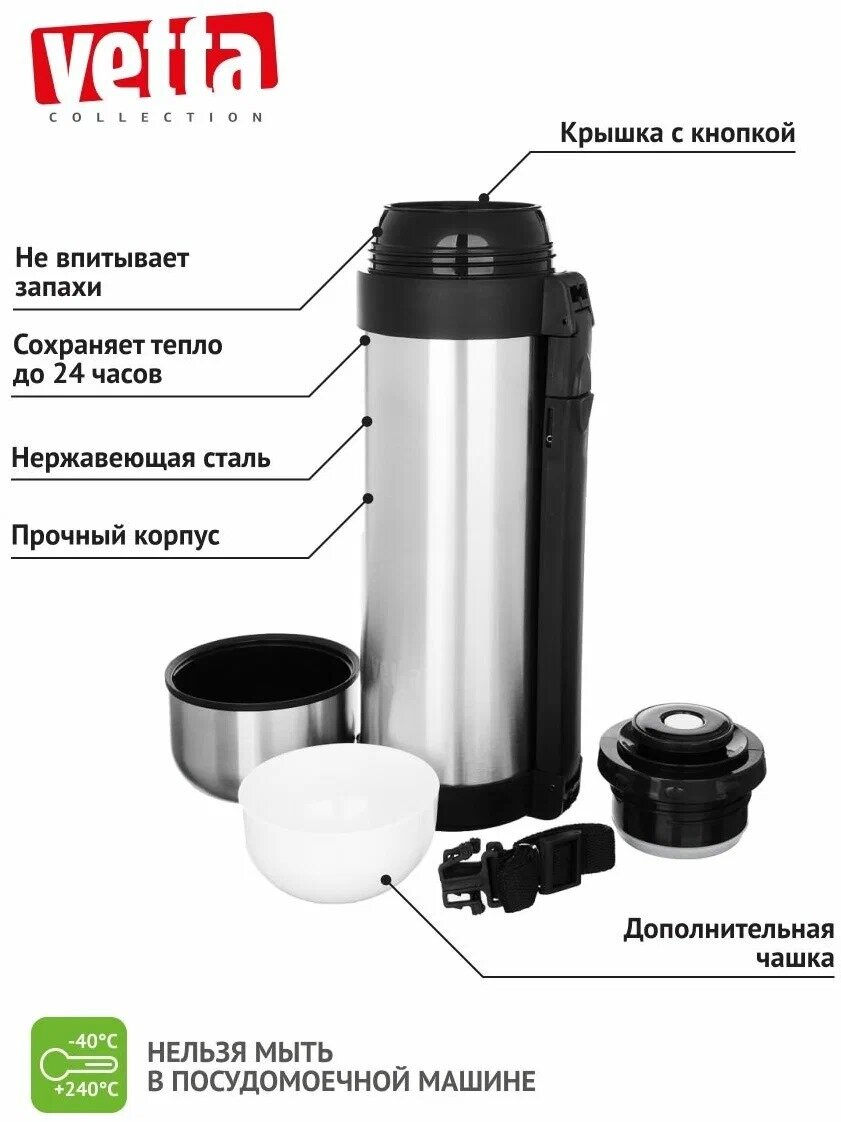 Термос для супа с широким горлом 1,8 л Vetta, термос для еды, чая, кофе, нержавеющая сталь