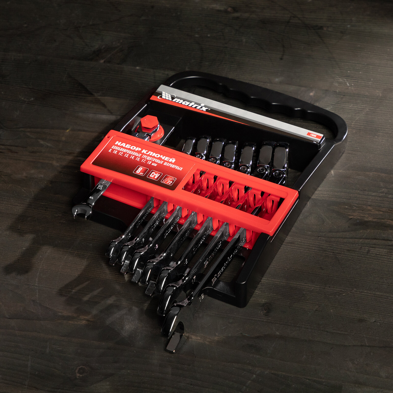 Набор ключей комбинированных, трещеточных шарнирных 8 шт Matrix 14898