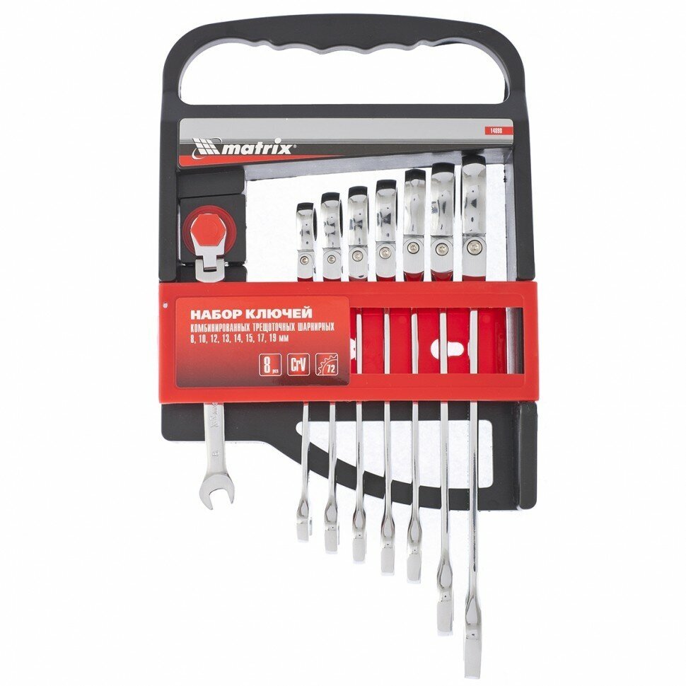 Набор комбинированных трещоточных шарнирных ключей MATRIX 8шт 14898