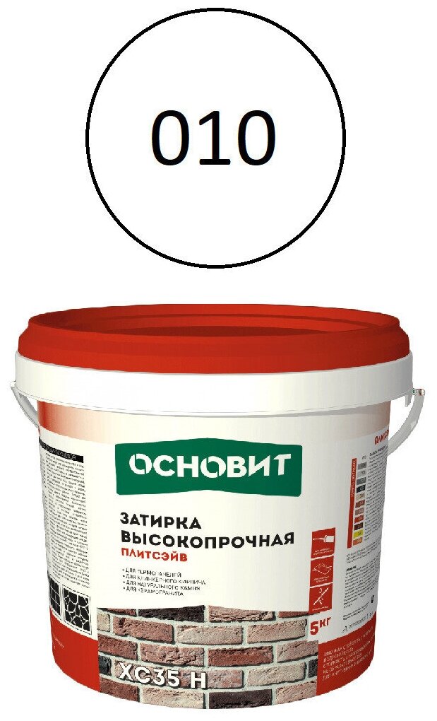 Затирка цементная высокопрочная Основит Плитсэйв XC35 H №010, белая, 5 кг