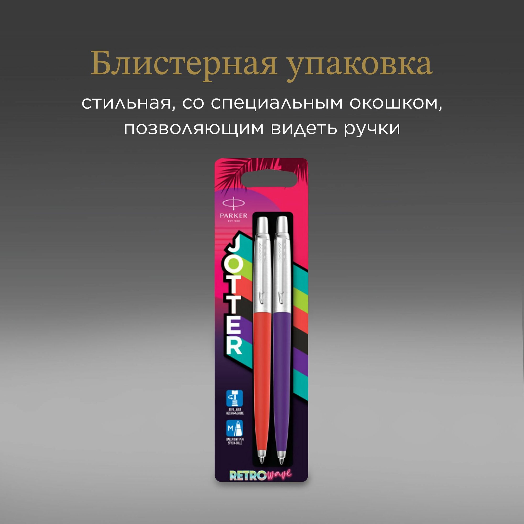 Купить Набор ручек Parker Jotter Originals 80s Retrowave (2186314) Vermilion Red/Indigo Purple M син. черн. блистер ручка шариковая 2шт.