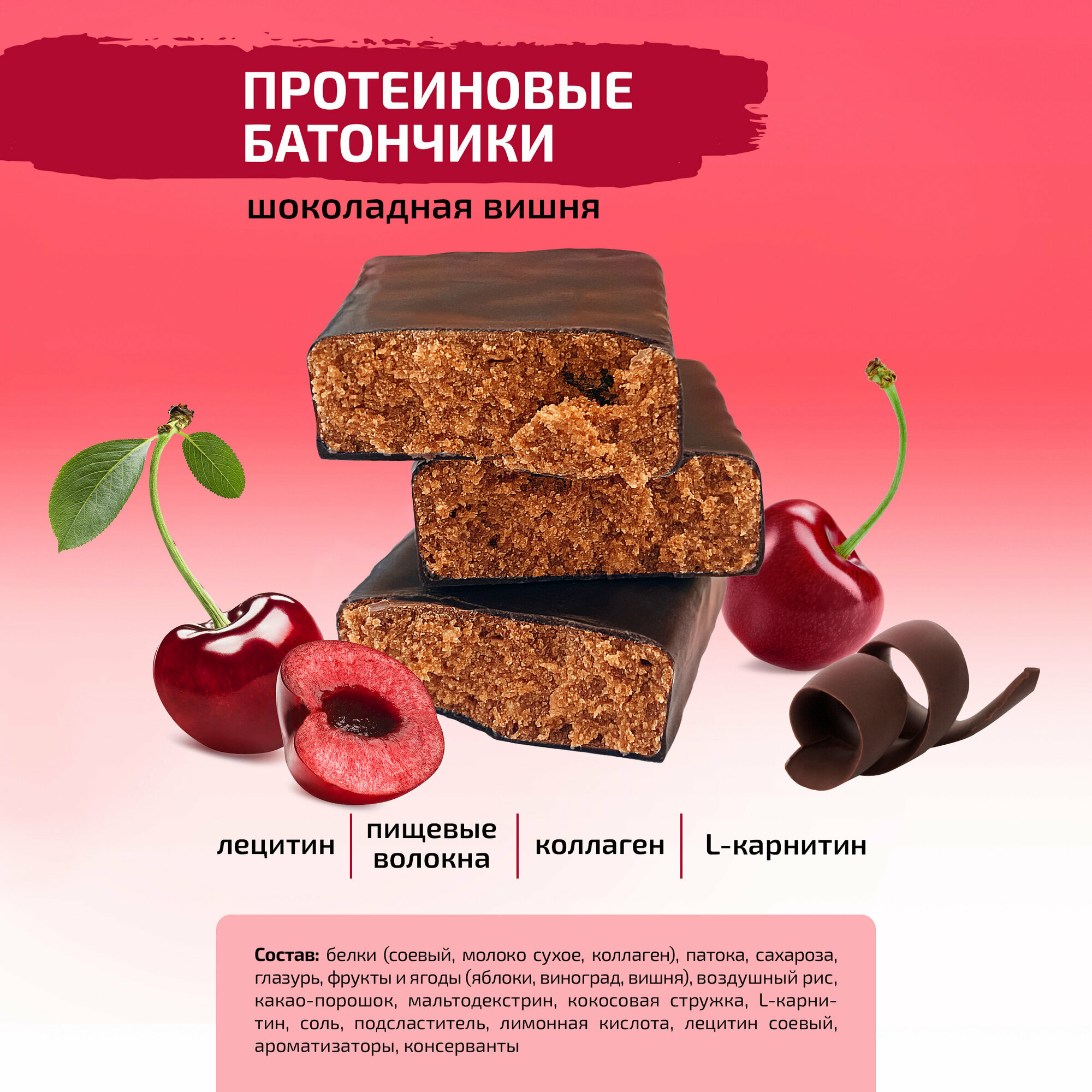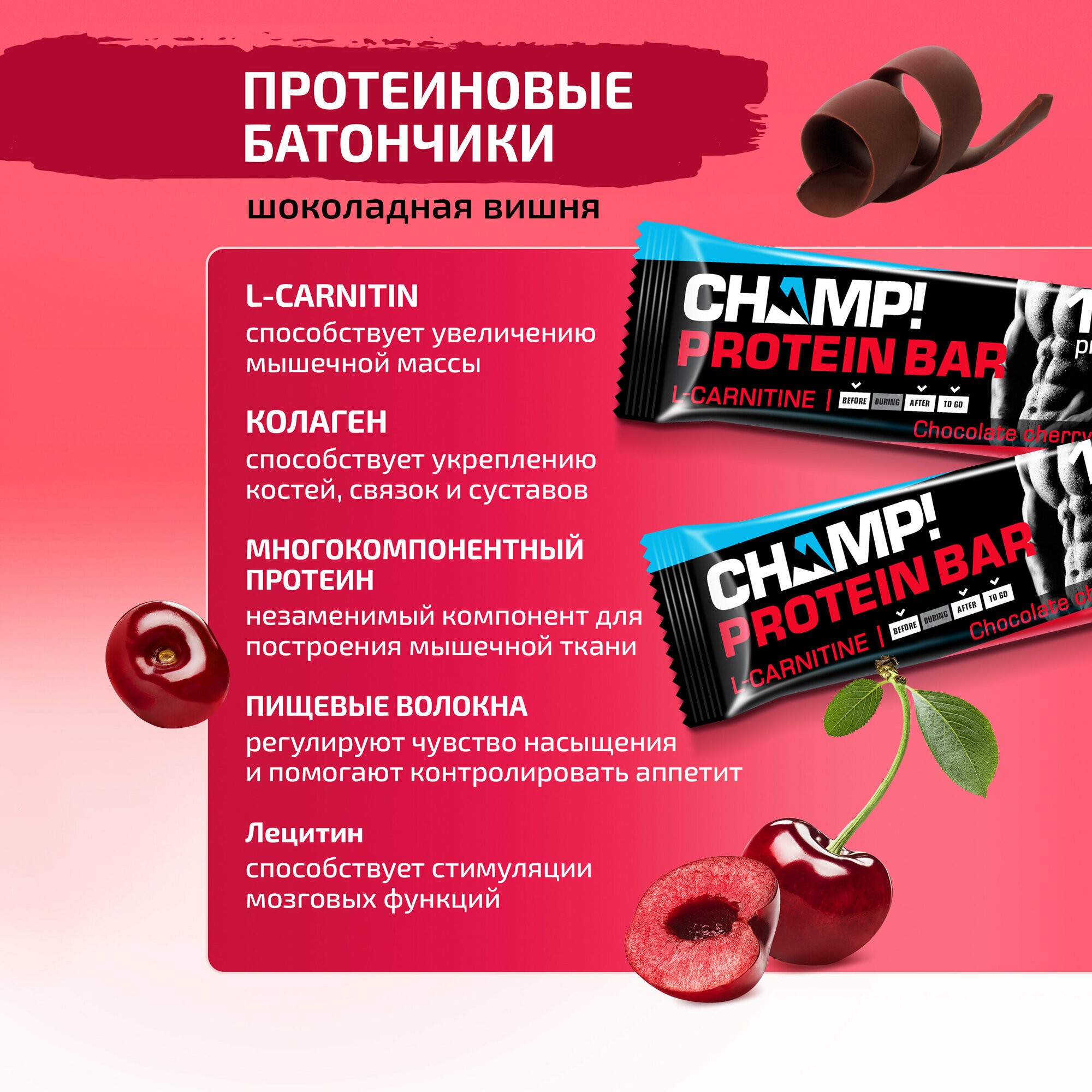 Батончик шоколадная вишня протеиновый Champ!, 18 шт х 45гр
