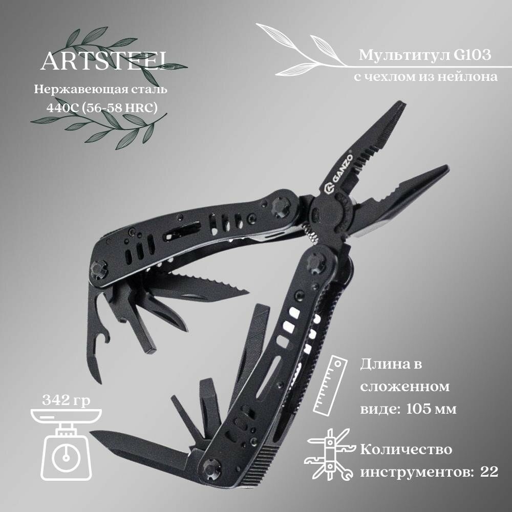 Мультитул Ganzo G103, 105 мм, 22 функций, нейлоновый чехол