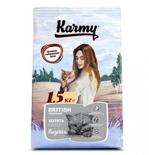 Корм Karmy Kitten для котят, беременных и кормящих кошек, с индейкой, 1.5 кг