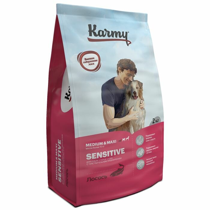 Сухой корм KARMY Sensitive Medium&Maxi для собак средних и крупных пород с чувствительным пищеварением Лосось 2кг