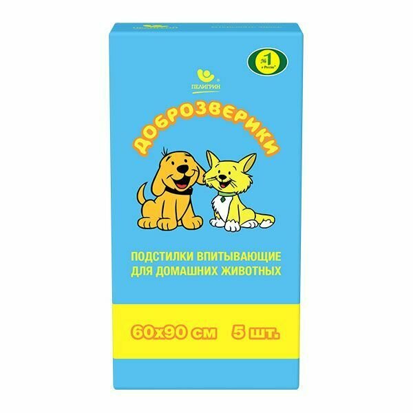 Доброзверики подстилки для животных "Экономичная упаковка", 60х90 см, 5 шт