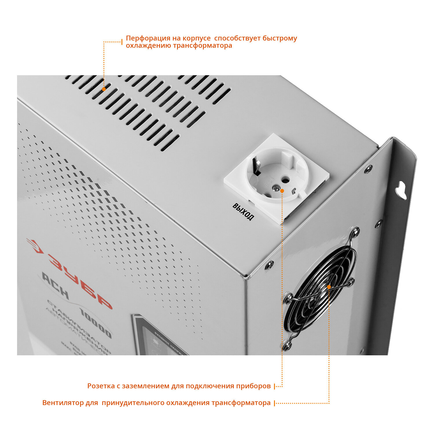 ЗУБР АСН 10000 профессиональный стабилизатор напряжения навесной 10000 ВА, 140-260 В, 8%