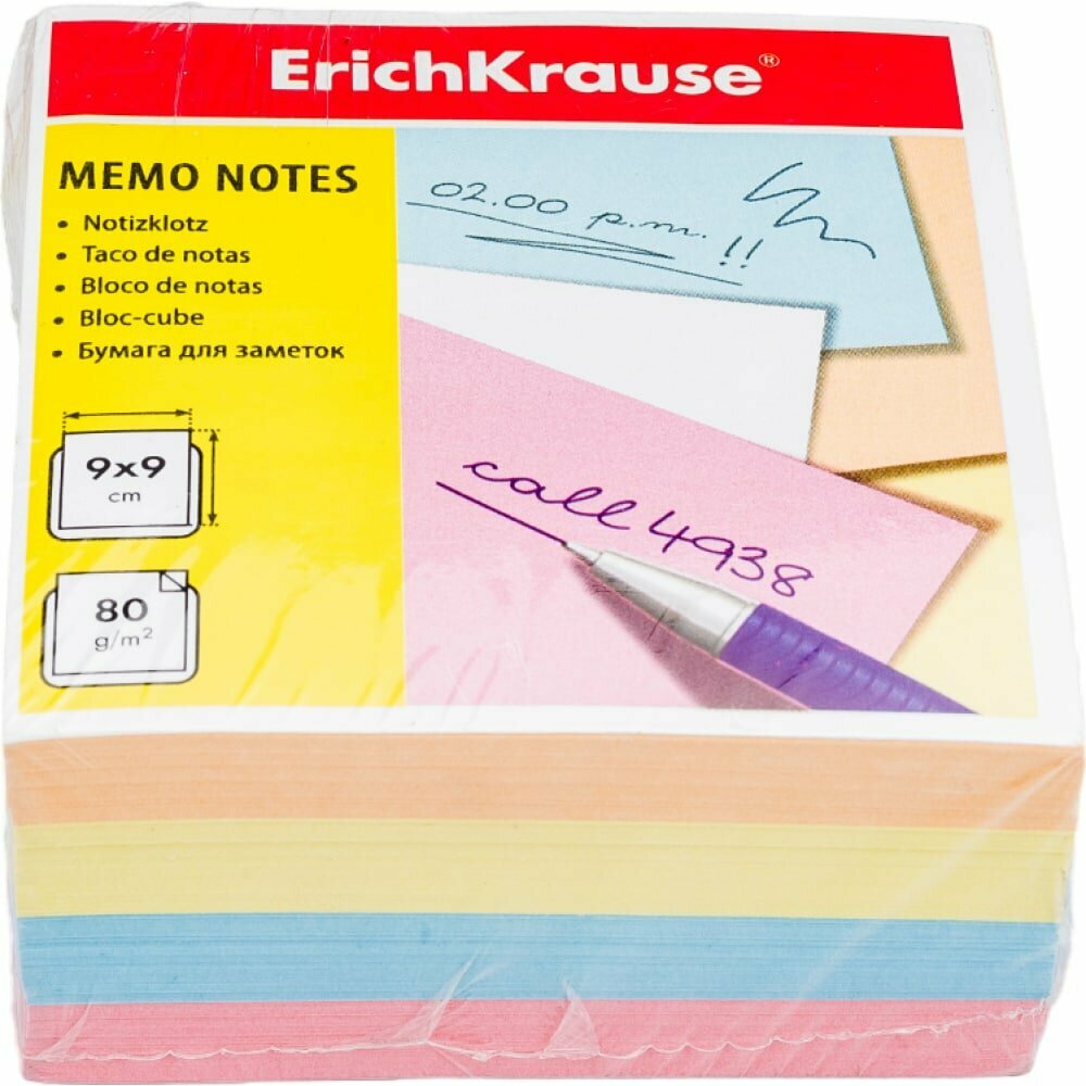 Купить ErichKrause Блок бумаги для записей ErichKrause, 9 x 9 x 5 cм, плотность 80 г/м2, люкс, цветной