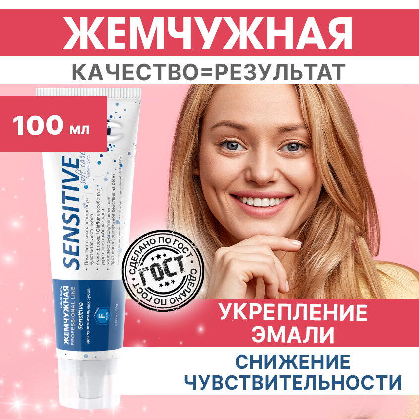 Зубная паста Жемчужная Professional line Sensitive Для чувствительных зубов, 100 мл