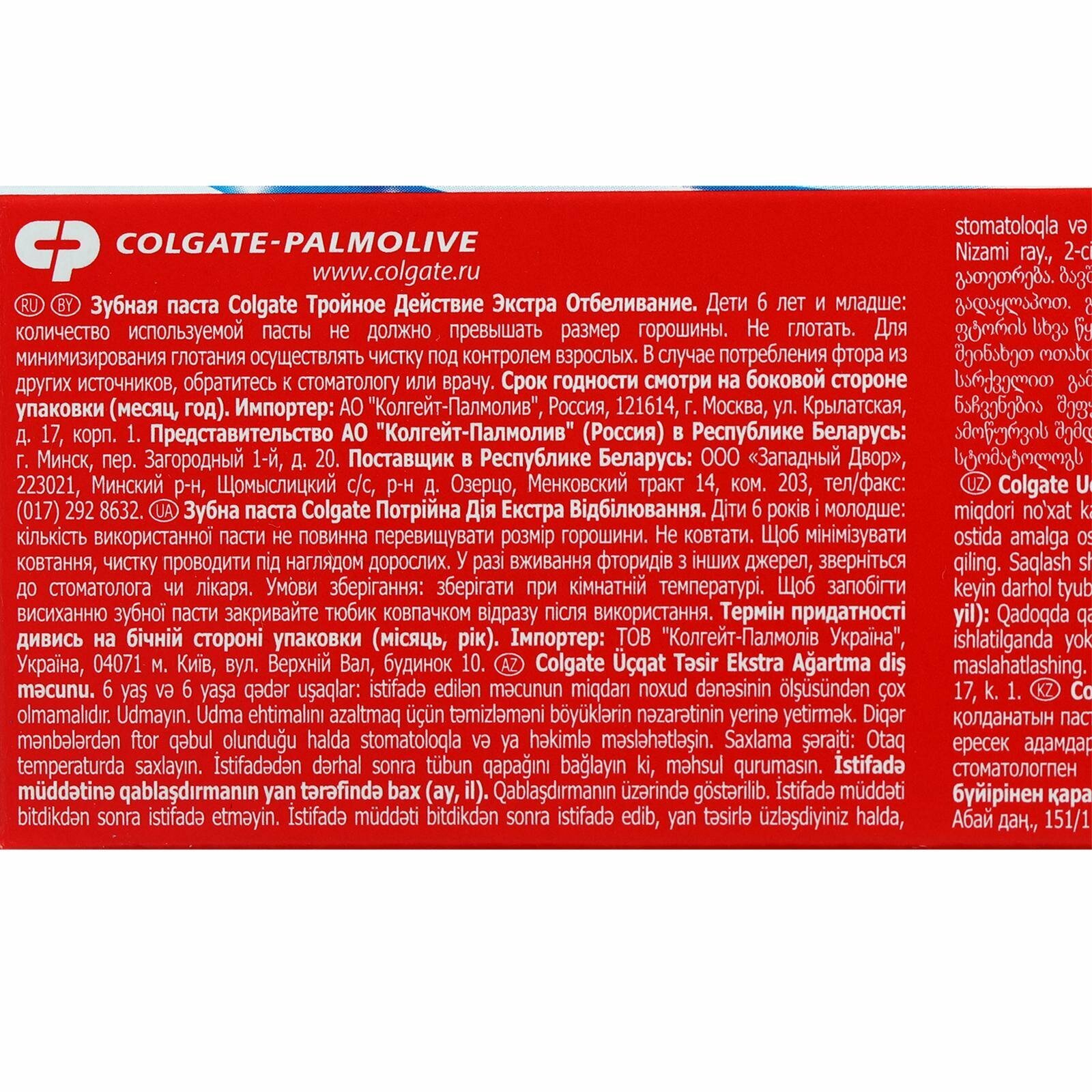 Colgate Зубная паста Тройное действие Экстра отбеливание для восстановления естественной белизны зубов 100 мл - 3 шт