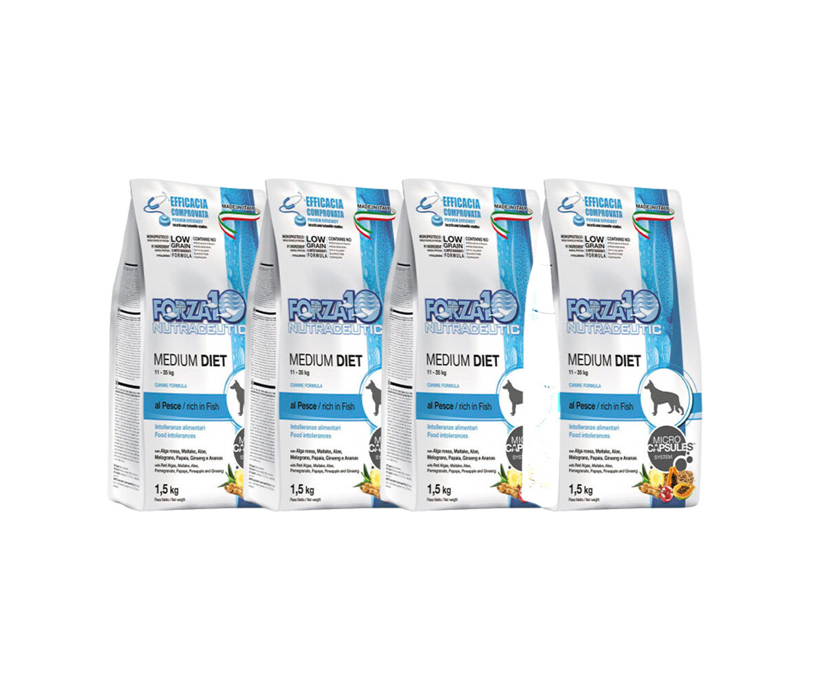 FORZA10 DOG MEDIUM MONODIET монобелковый для взрослых собак средних пород при аллергии с рыбой (1,5 кг х 6 шт)
