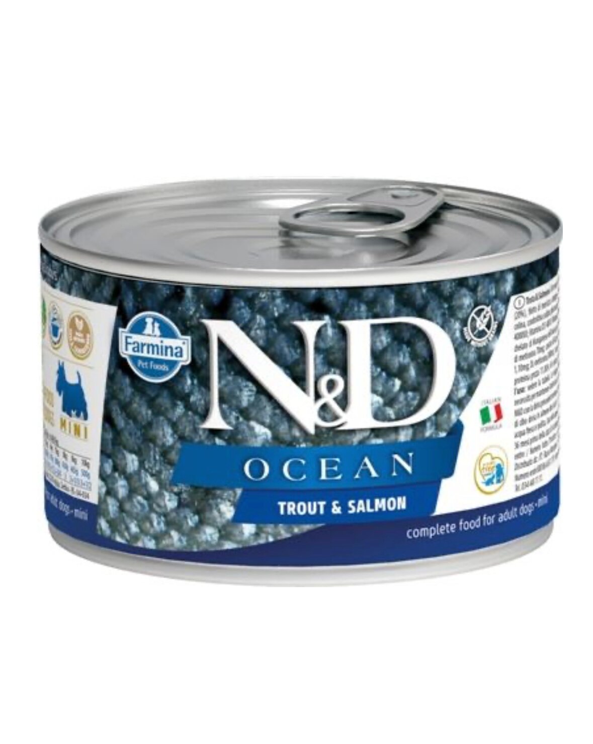 Консервированный корм для собак мелких пород, ND OCEAN, Форель с лососем, 140 гр