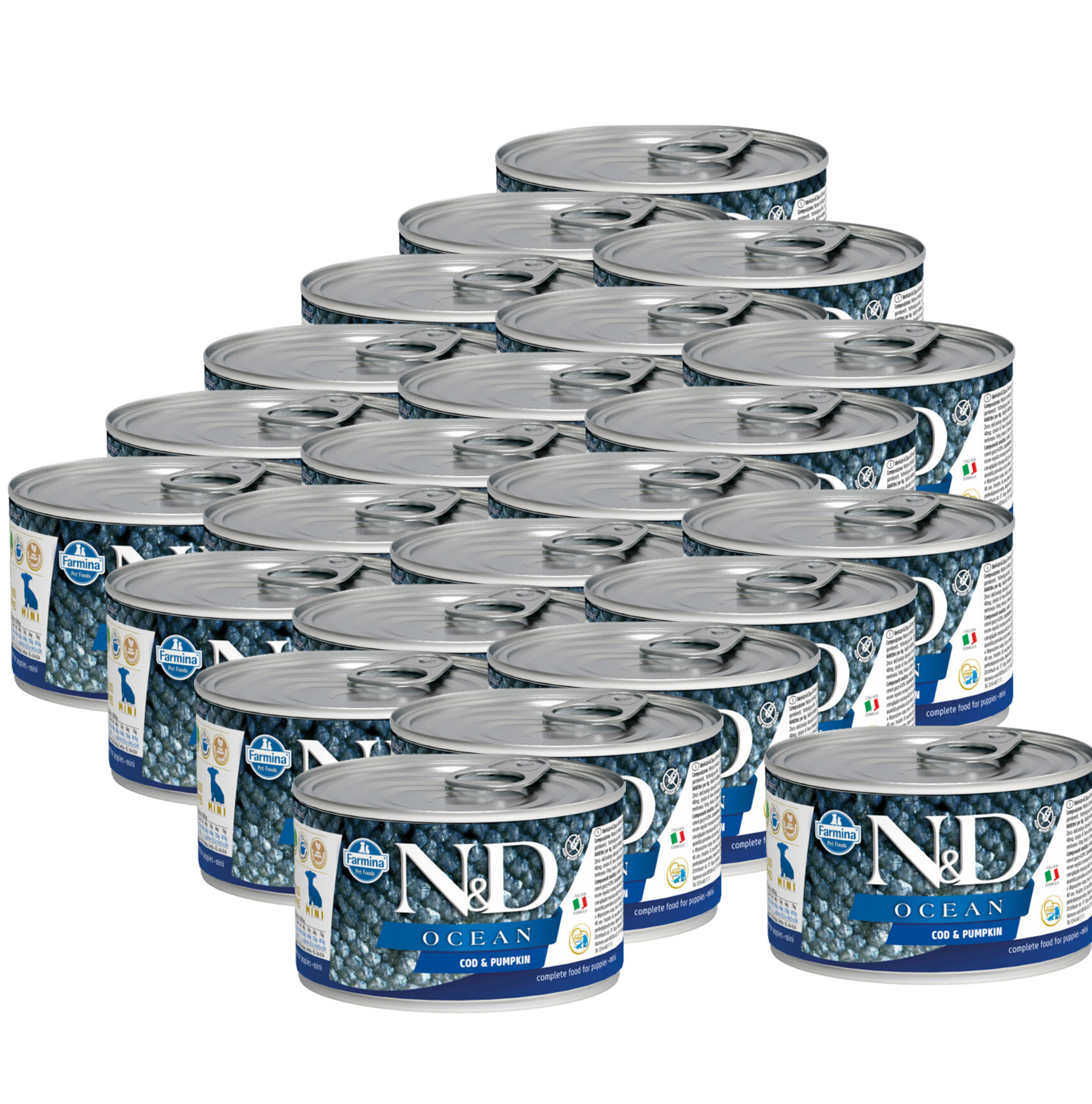 Купить N&D для собак оушен, треска и тыква для щенков мини 0,14 кг х 24 шт.