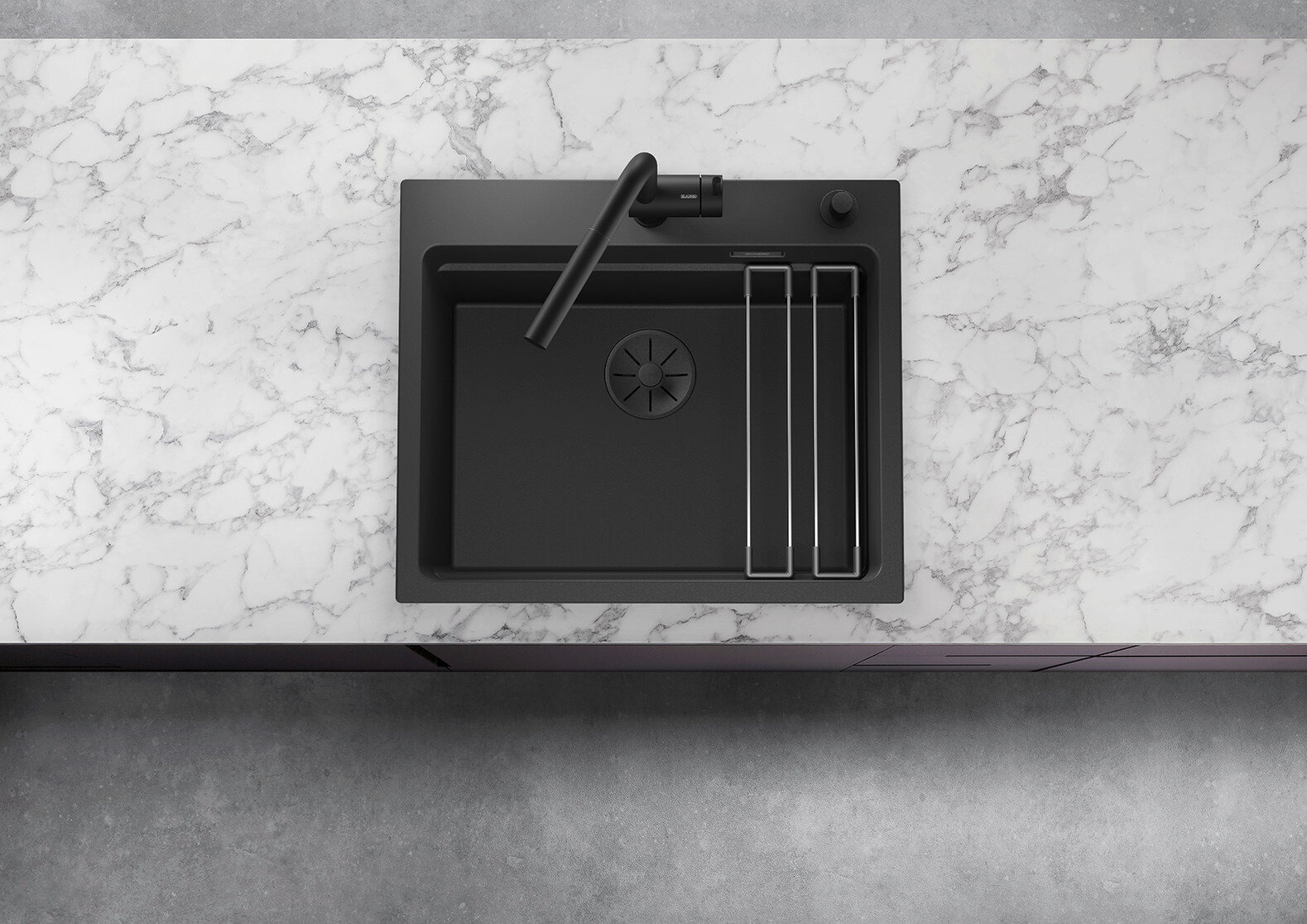 Кухонная мойка BLANCO Etagon 6, черный, накладная, искусственный гранит, прямоугольная