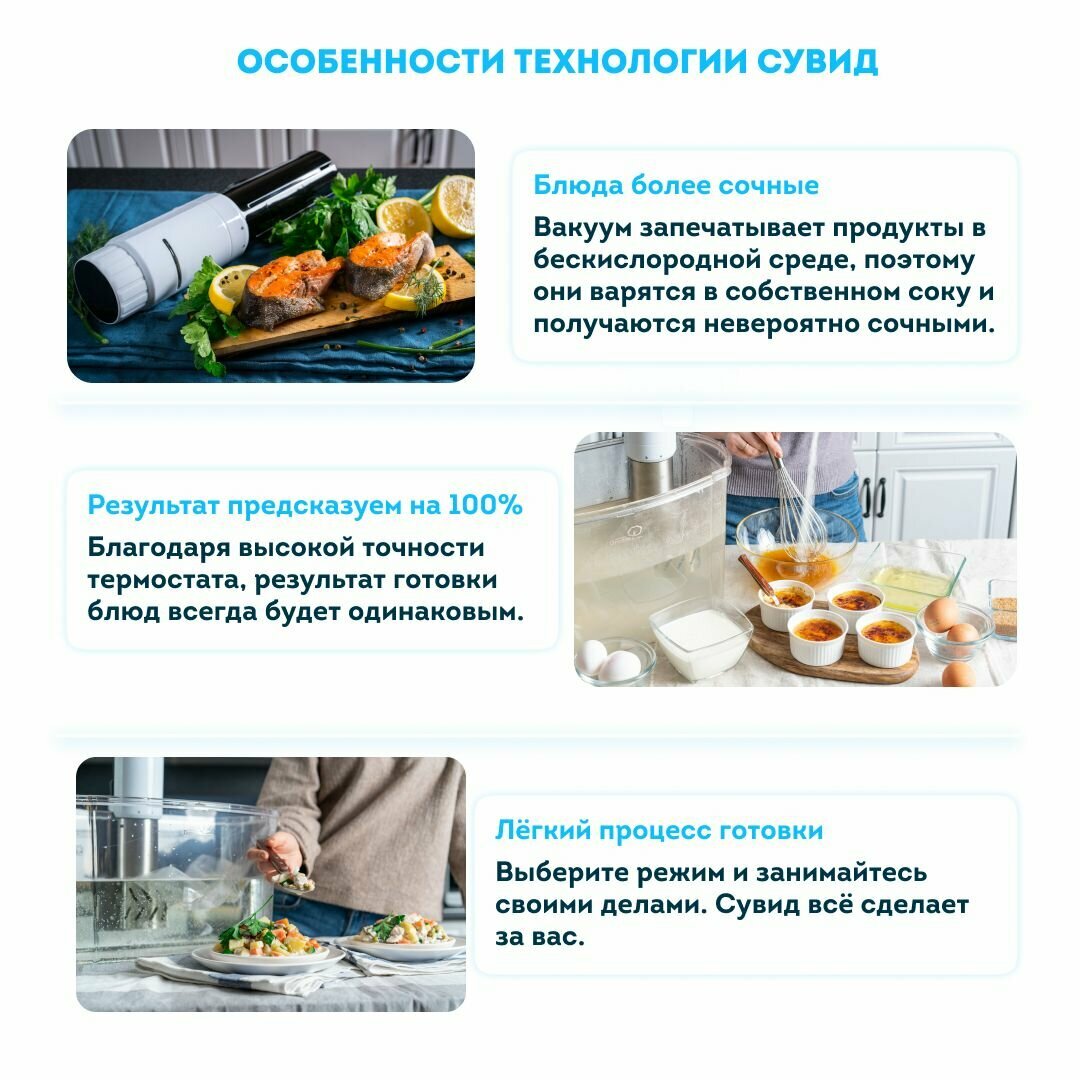 | Отзыв: | Стала готовить в сувиде и поняла,что это совсем другой подход к еде. Благодаря тому, что еда готовиться в вакууме, продукты сохраняют полезные свойства. Так же процесс готовки гораздо быстрее и приятнее.